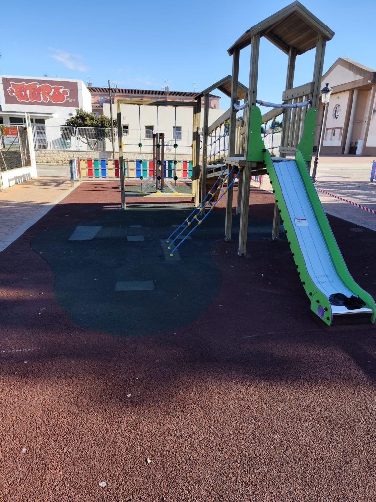 – Se ha sustituido el parque completo, añadiendo un columpio doble y el columpio cesta nido se ha sustituido por uno nuevo.